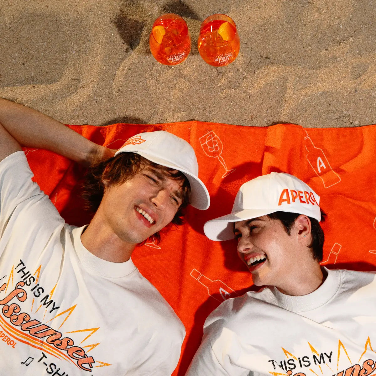 Wenn die Sonne beginnt unterzugehen und der Himmel dieses Orange annimmt, das alles verändert, wird die 'This is my Sssunset' Kappe von Ssstufff x Aperol dein bester Freund. Sie ist nicht nur ein Accessoire: Sie ist der einfachste Weg, fast unbemerkt in diesen Moment einzutauchen, wenn der Tag sich dehnt und die Zeit keine Rolle mehr spielt. Leicht und bequem, ist sie perfekt für die Pläne, die ohne Eile beginnen und enden... wann immer sie enden sollen.