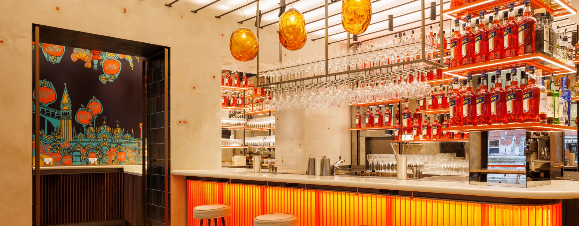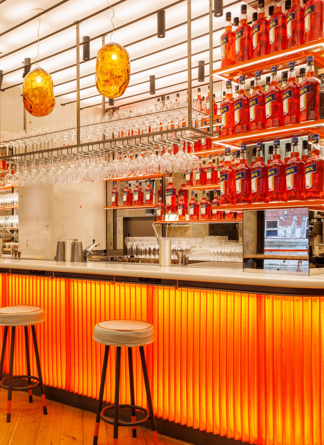 Every detail here celebrates the joy of sharing — whether you’re taking a relaxed break, enjoying time together, or diving into an immersive experience within the Aperol world.